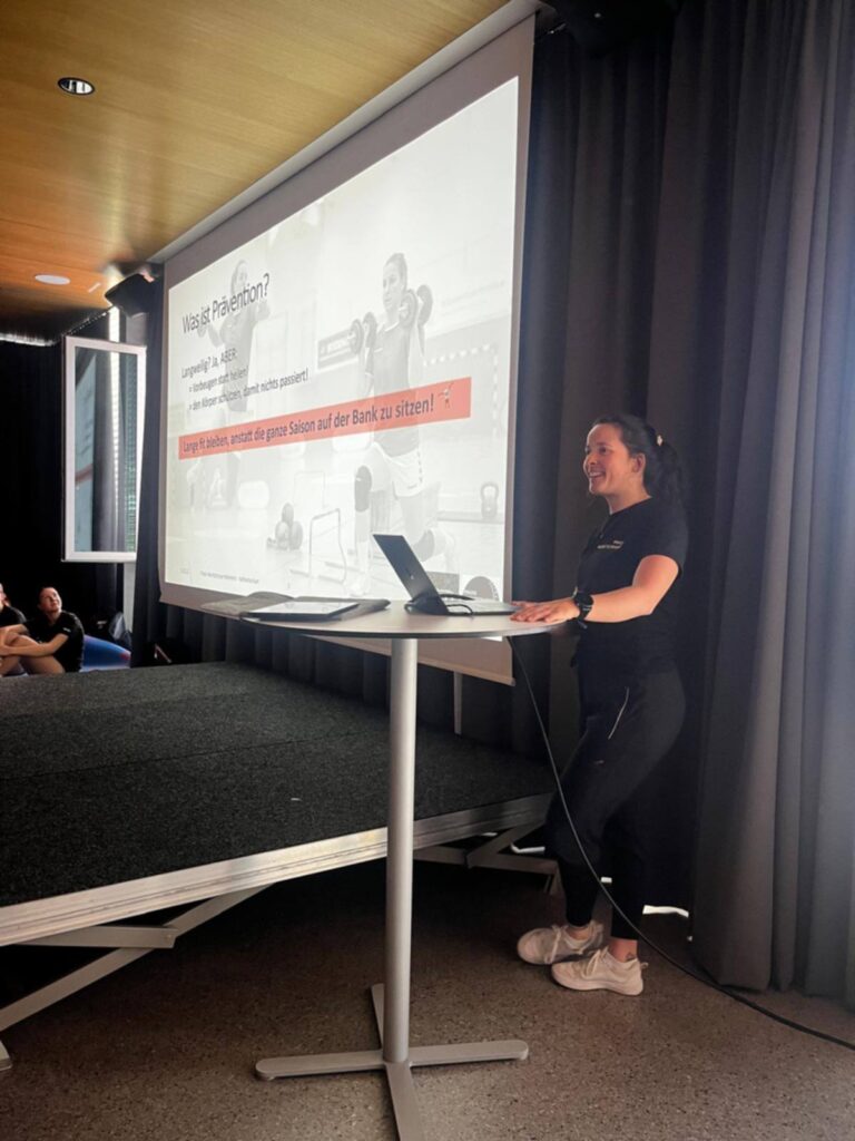 Neben kurzen theoretischen Inputs lag der Schwerpunkt vor allem auf der praktischen Umsetzung. Die Spielerinnen konnten die Übungen direkt ausprobieren und erhielten wertvolle Tipps für das eigenständige Training im Alltag.