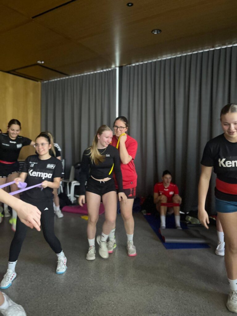 Unter der Leitung von SSV-Physiotherapeutin Kathi Auer nahmen rund 40 Spielerinnen der U16- und U14-Teams teil. Im Fokus standen praxisnahe Kraft- und Stabilisationsübungen, die speziell auf die Anforderungen im Handball abgestimmt sind. Ziel des Workshops war es, die körperliche Belastbarkeit der jungen Athletinnen zu verbessern, Verletzungen vorzubeugen und damit auch die sportliche Leistungsfähigkeit nachhaltig zu steigern.