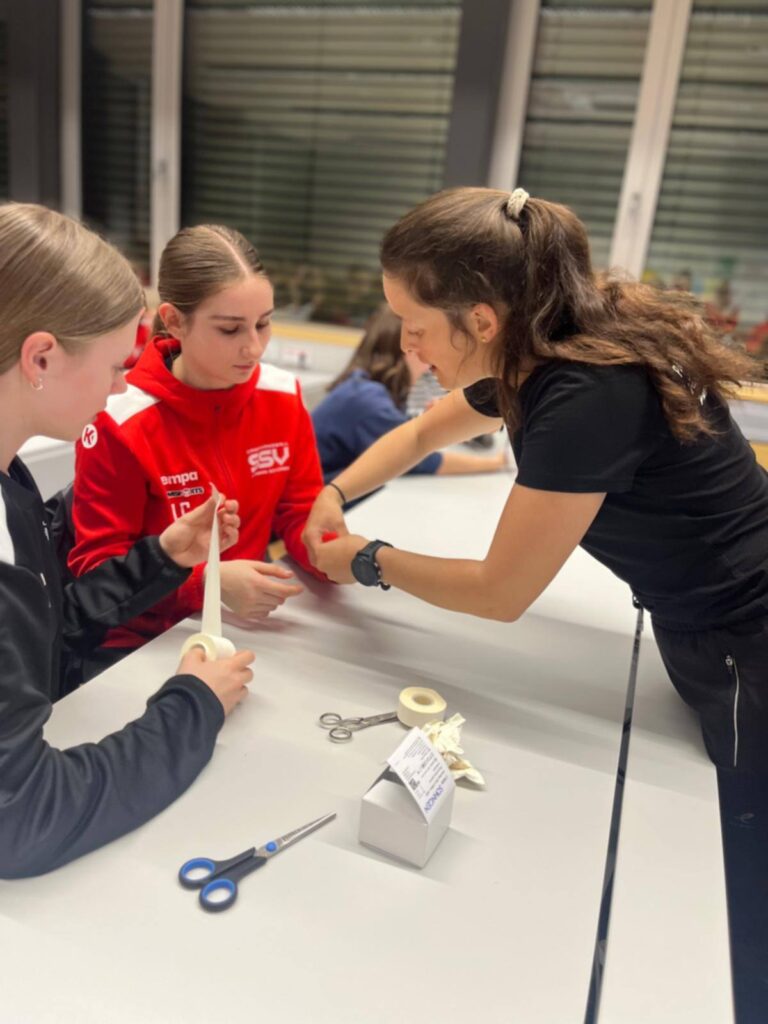 Im Rahmen des Vereinsprojekts „Spielstark“ setzte der SSV Dornbirn Schoren kürzlich einen weiteren wichtigen Impuls in der Förderung der eigenen Spielerinnen: Ein praxisnaher Taping-Workshop bot den U14- und U16-Girls die Möglichkeit, ihr Wissen rund um Prävention und Regeneration im Sport zu erweitern.
